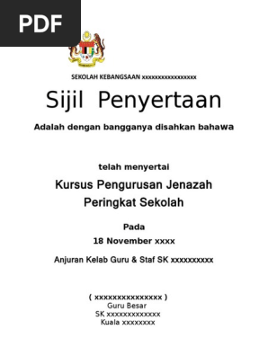 Sijil pengurusn jenazah. Salinan Kad Pengenalan Pemohon. Program sehari itu bermula berlangsung di Dewan Seminar Masjid Sri Sendayan Bandar Sri Sendayan. HUKUM DAN PENGURUSAN KANDUNGAN.