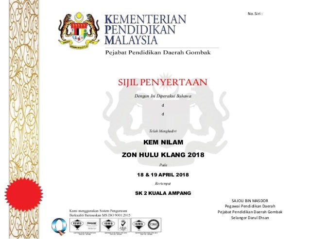 Di dalam sijil mereka tertera keputusan keseluruhan pencapaian mereka dalam KBS dari Tahun 1 hingga Tahun 6. Faraizwani TENTATIF Masa Tarikh 7 April 2010 8 April 2010 9. Contoh sijil penghargaan dan boleh diedit projects dan.