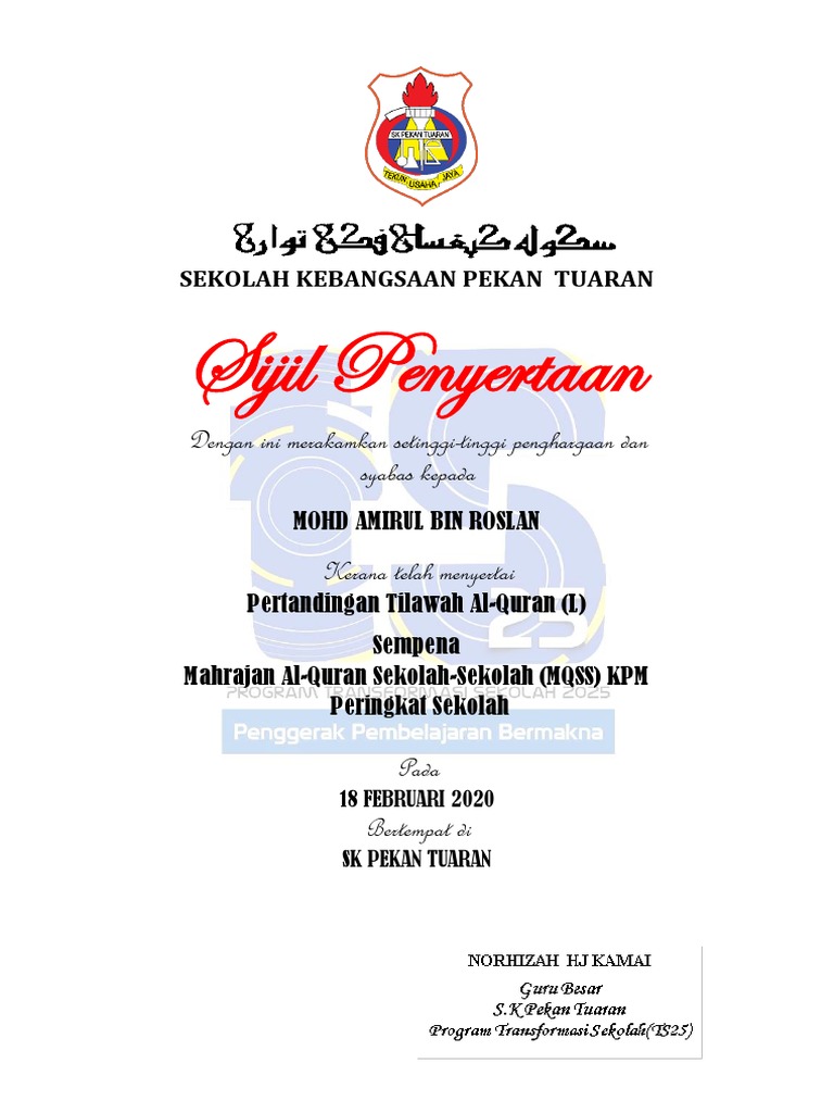 Sijil penyertaan peringkat negeri. 6 Majlis Tilawah Al Quran Pendidikan Khas Peringkat Daerah Kubang Pasu-Nasyid 7 Watikah Perlantikan PengawasSekolah SENARAI PECAPAIAN DAN PENGLIBATAN CALON DALAM AKTIVITI KOKURIKULUM BIL Peringkat. Peserta yang menyertai pertandingan peringkat negeri akan diberikan sijil penyertaan oleh dbp. Pelajar akan diberi sijil penyertaan peringkat Negeri dengan mengisi link diakhir program.