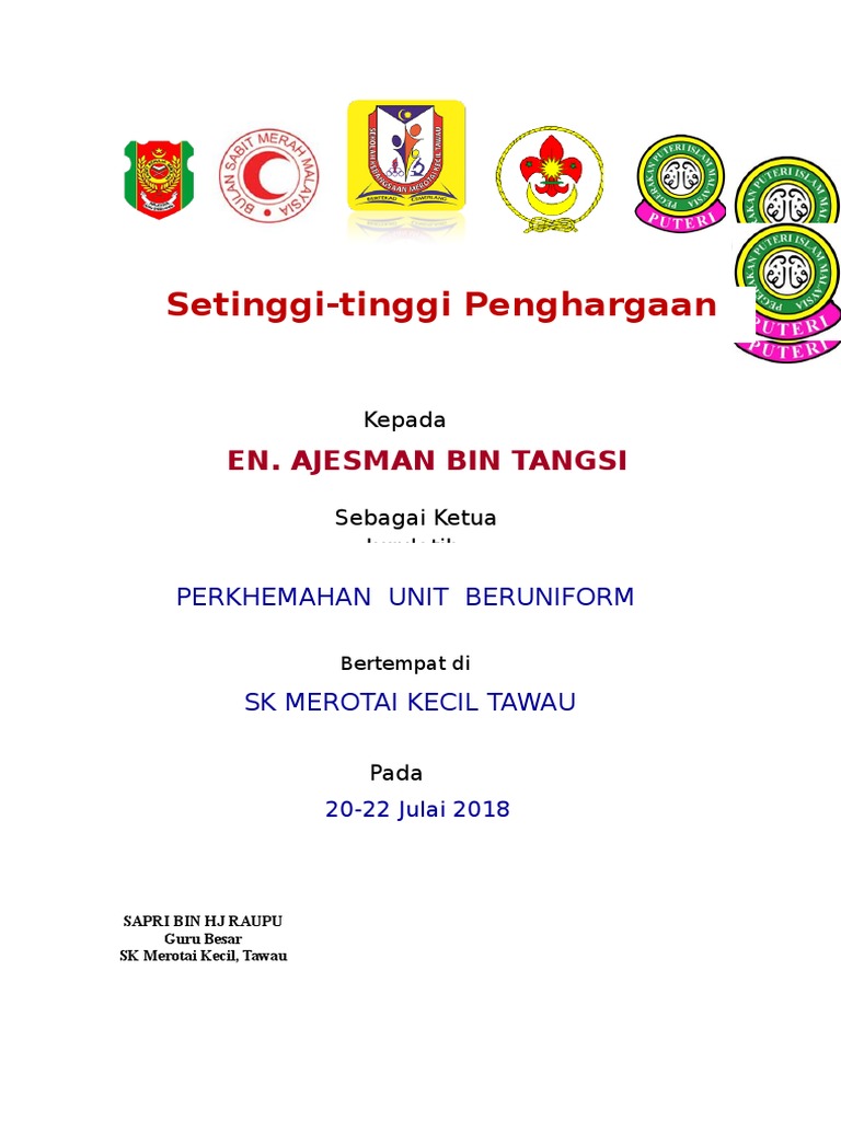 Anda boleh edit dan terus print kerana saiz bagi setiap template. 136 Mengedar surat penghargaan kepada pihak terlibat dan sijil pencapaian serta penyertaan kepada peserta. 822 Anggota platun mestilah terdiri dari pelbagai kaum.