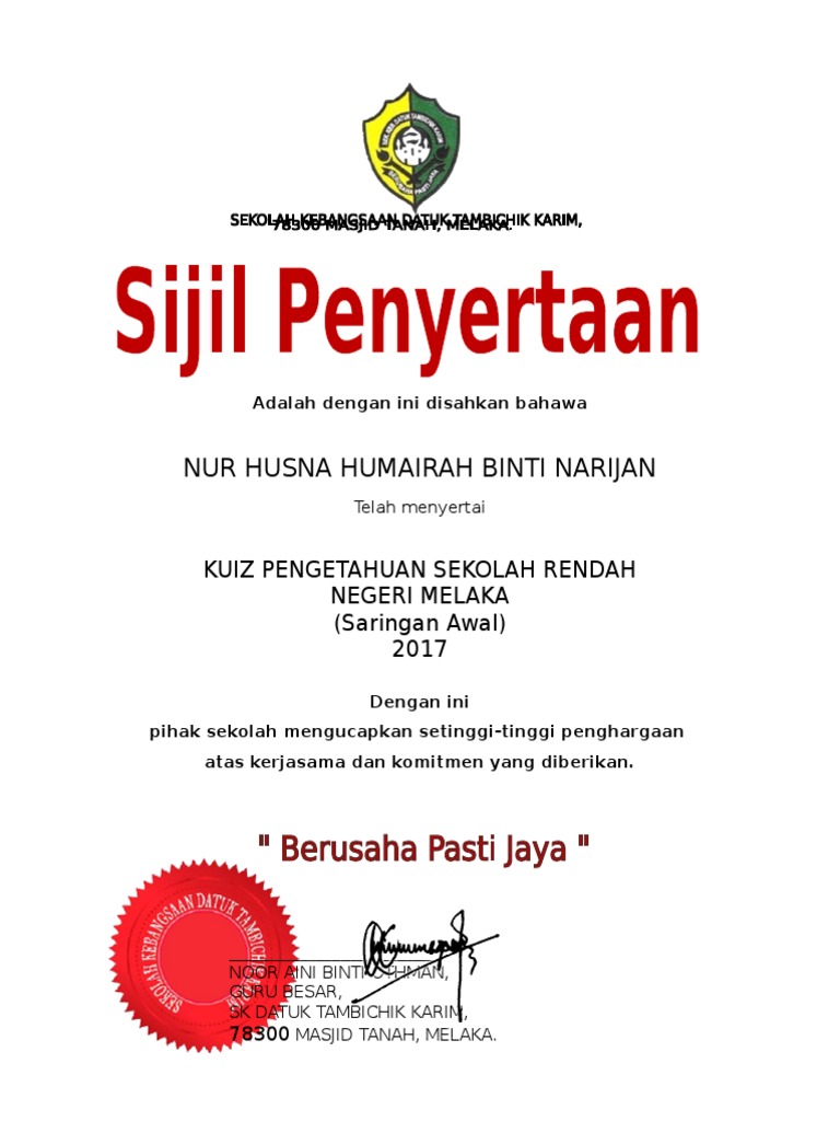Save Save Sijil Penyertaan For Later. Sijil Penghargaan Pengawas Skbe. Sijil penyertaan sijil penghargaan Disebabkan terlalu ramai pihak yang terlibat dalam menjayakan sesebuah program khidmat masyarakat ini maka kepada siapa.