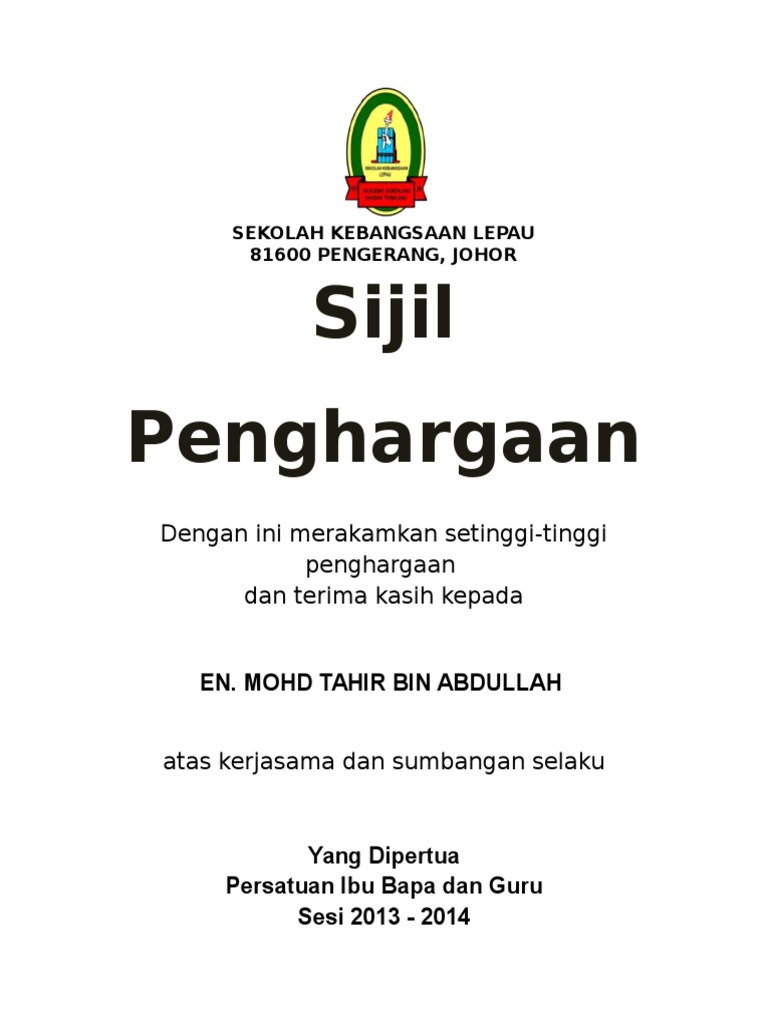 Contoh Sijil Penghargaan Untuk Ahli Jawatankuasa Lertyi