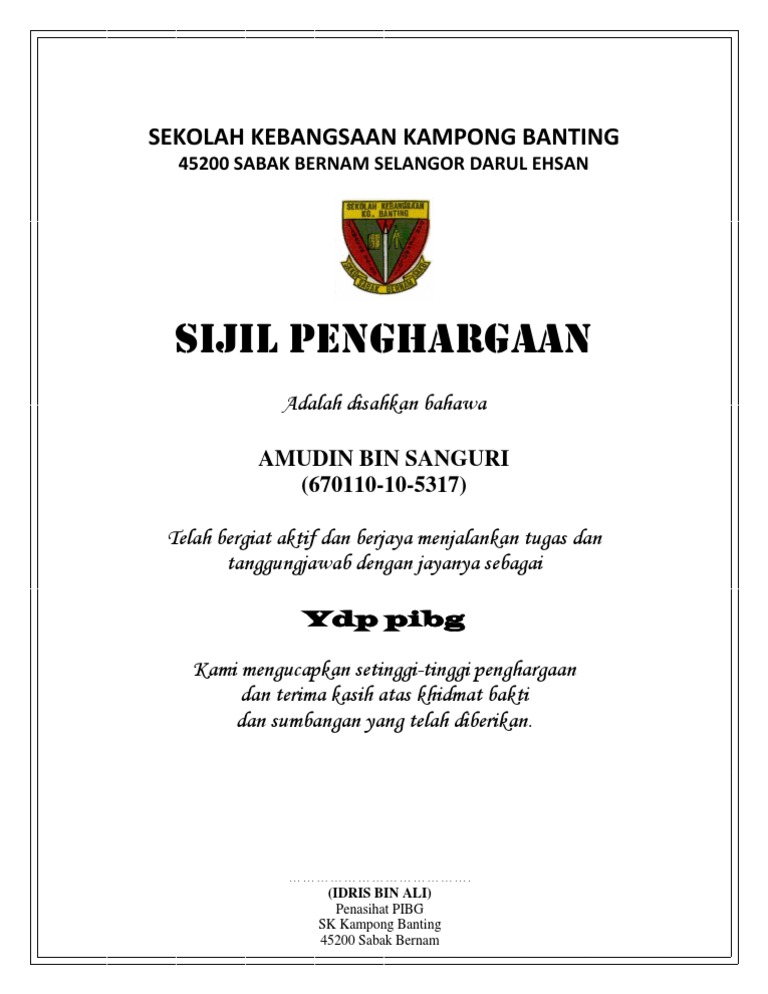 Sijil perhagaan pibg. Admin November 09 2021. PERSATUAN Ibu Bapa dan Guru PIBG adalah organ penting kepada sesebuah institusi pendidikan rendah dan menengah. Jalan Behor Pulai 01000 Kangar Perlis.