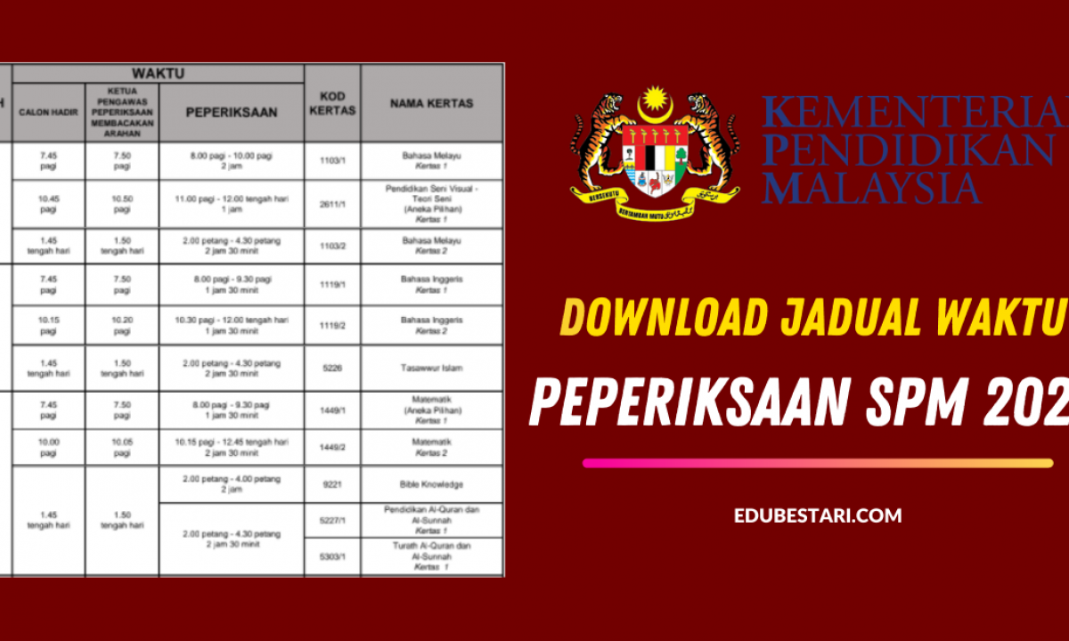 Rasmi Download Jadual Waktu Peperiksaan Spm 2021 Yang Terkini Edu Bestari