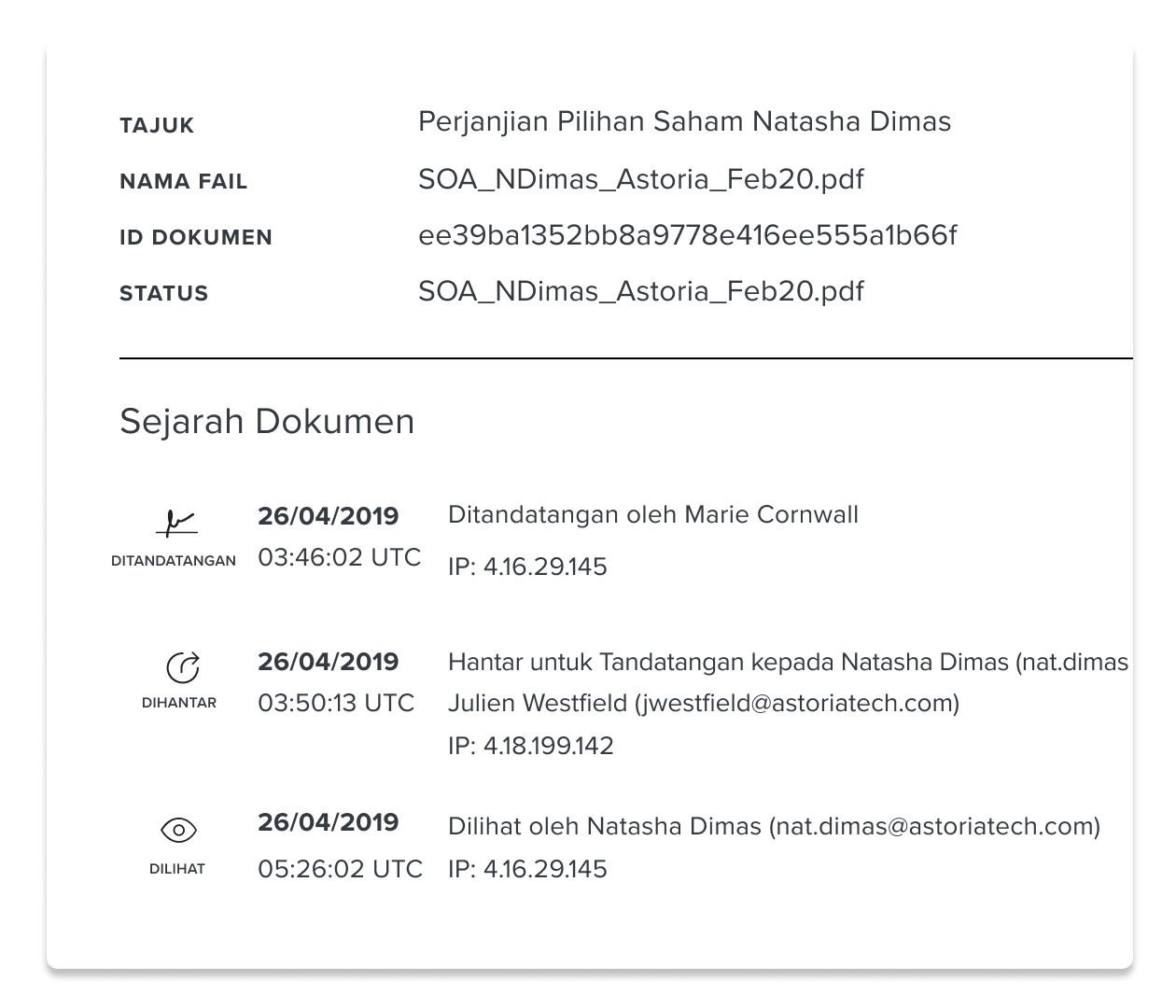 Segala kerjasama dan perhatian YB Dato dalam pekara ini amatlah dihargai dan di ucapkan terima kasih. Pihak berkuasa sijil mengikat identiti pengguna untuk sijil digital berasaskan PKI yang membolehkan pengguna menggunakan tandatangan digital pada dokumen dan platform menandatangani berasaskan awan. Untuk rekod penguatkuasaan tanda tangan digital di Malaysia terletak di bawah ATD1997 yang mempunyai peruntukan untuk mengatur penggunaan tandatangan digital dan hal-hal yang berkaitan dengannya.